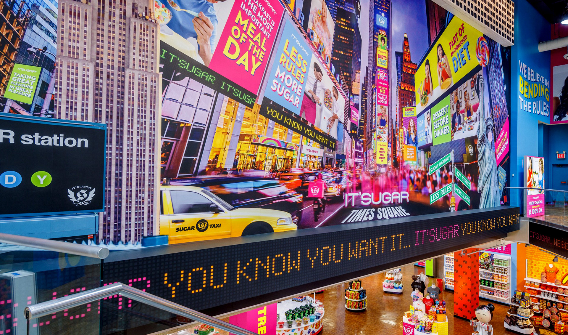 Create store graphics candy related and relevant to the city where they are located, working with brands such as Nerds, Oreo, Sour Patch Kids, Skittles and more!